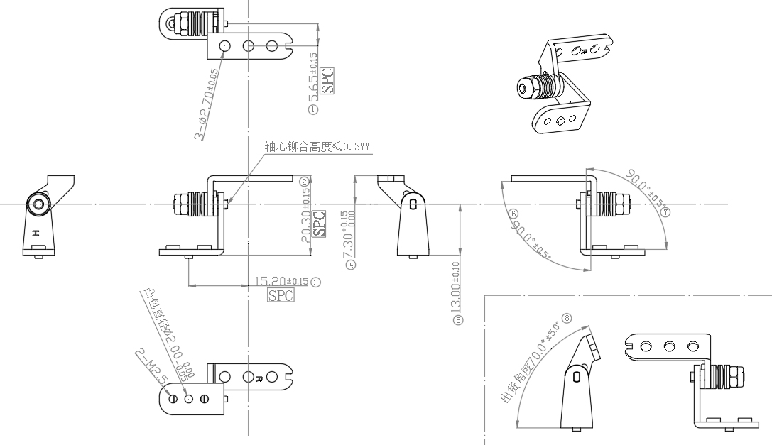 轉(zhuǎn)軸組成分為五金件和車制件五金件通過(guò)精密模具管控尺寸車制件通過(guò)CNC加工中心管控尺寸,可使轉(zhuǎn)軸外徑做到3mm,產(chǎn)品精度可達(dá)正負(fù)1個(gè)絲。